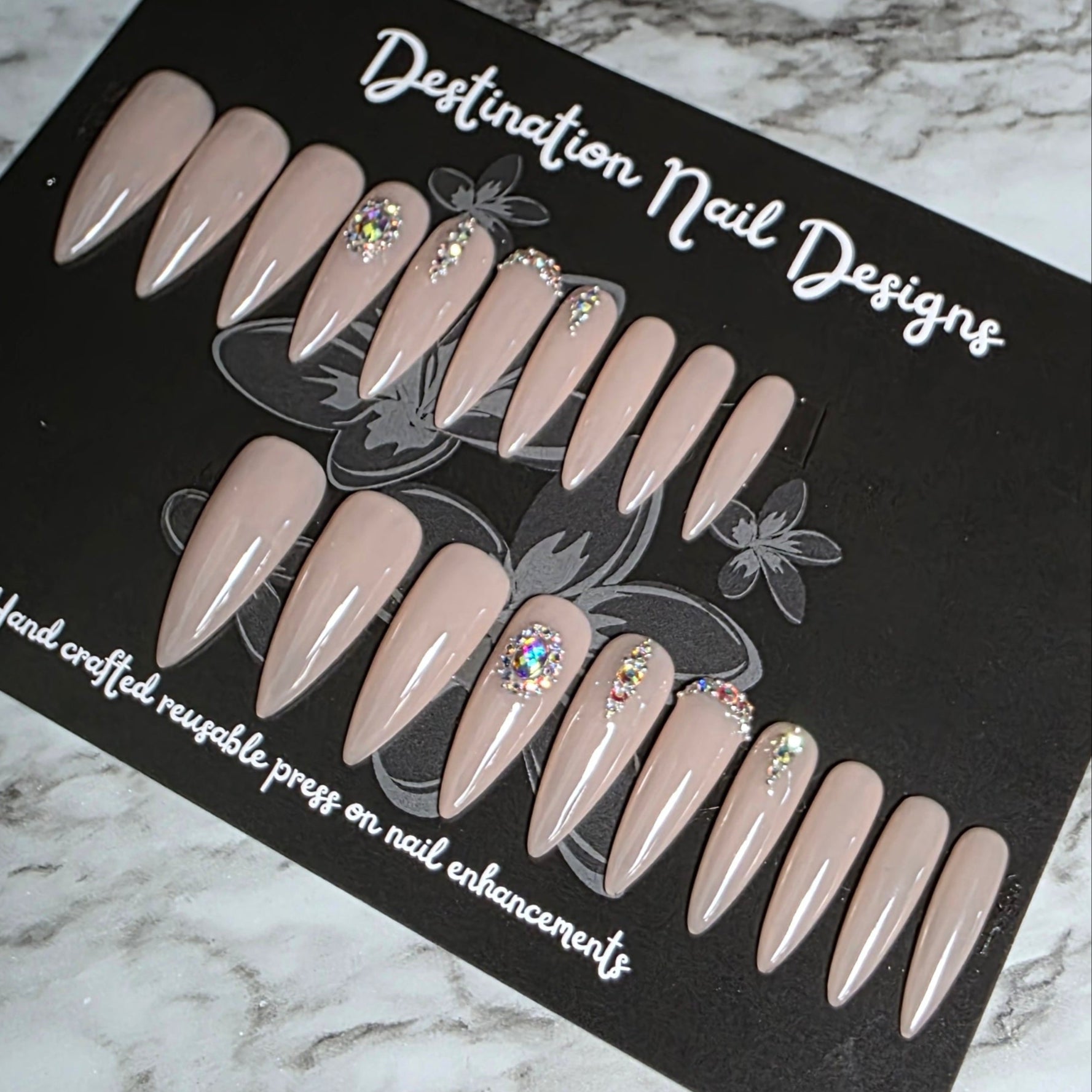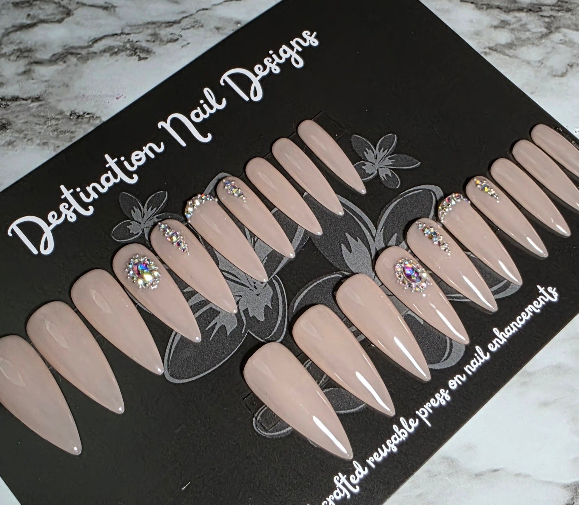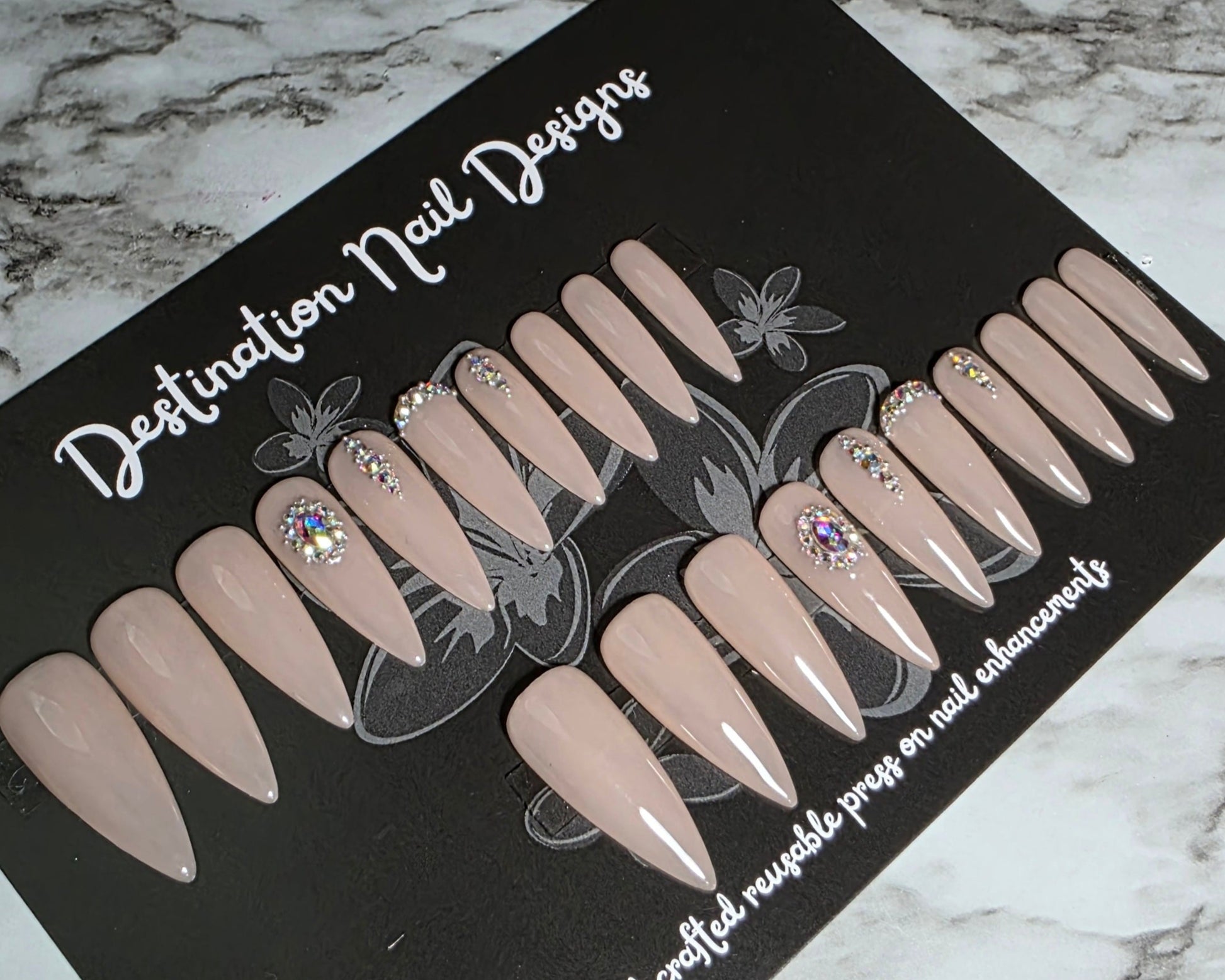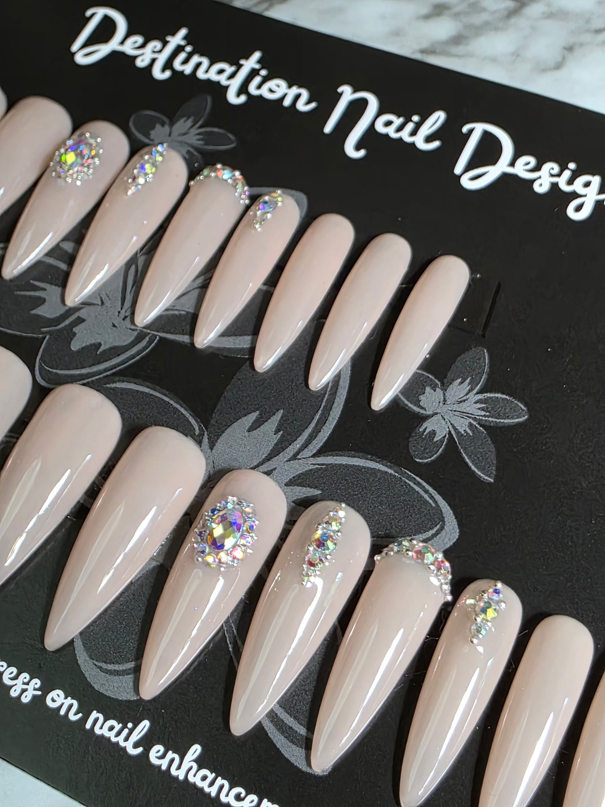 Sheer nude with some gems and sparkle just to add a touch of flair. I mean, the XL stiletto is a vibe on it's own. Rock it! 💎