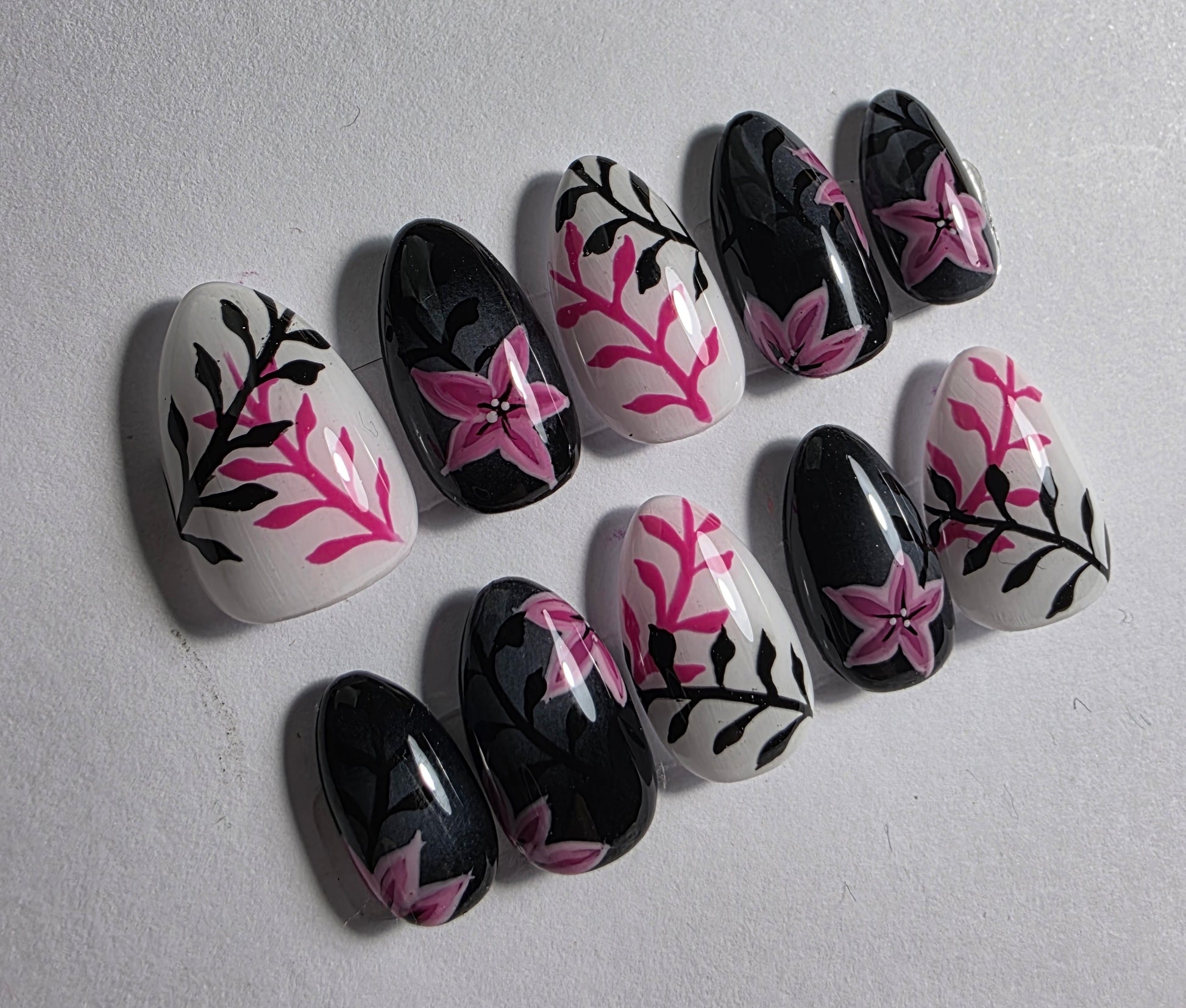 Choose Custom Order deposit and add "Fun with Flowers" to cart notes if you want this look in a different sizing, length, shape or color! We will connect before your order is created! Final price varies based on your approved design choices.