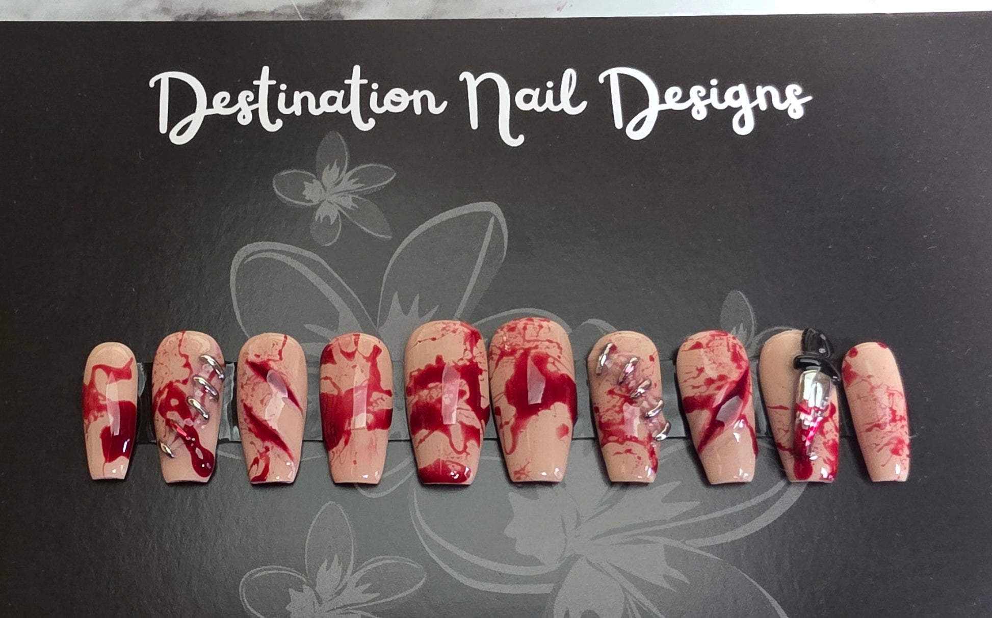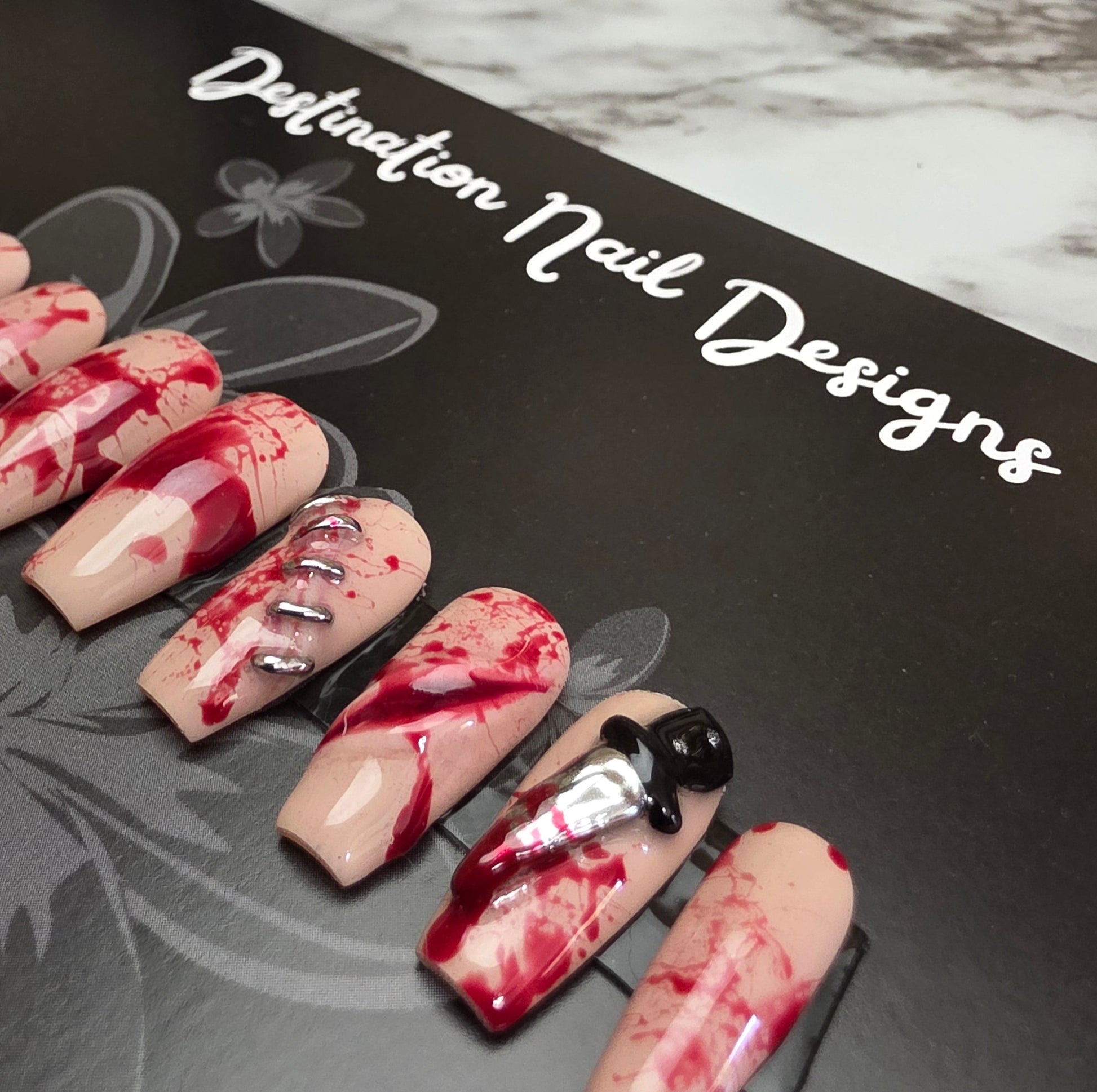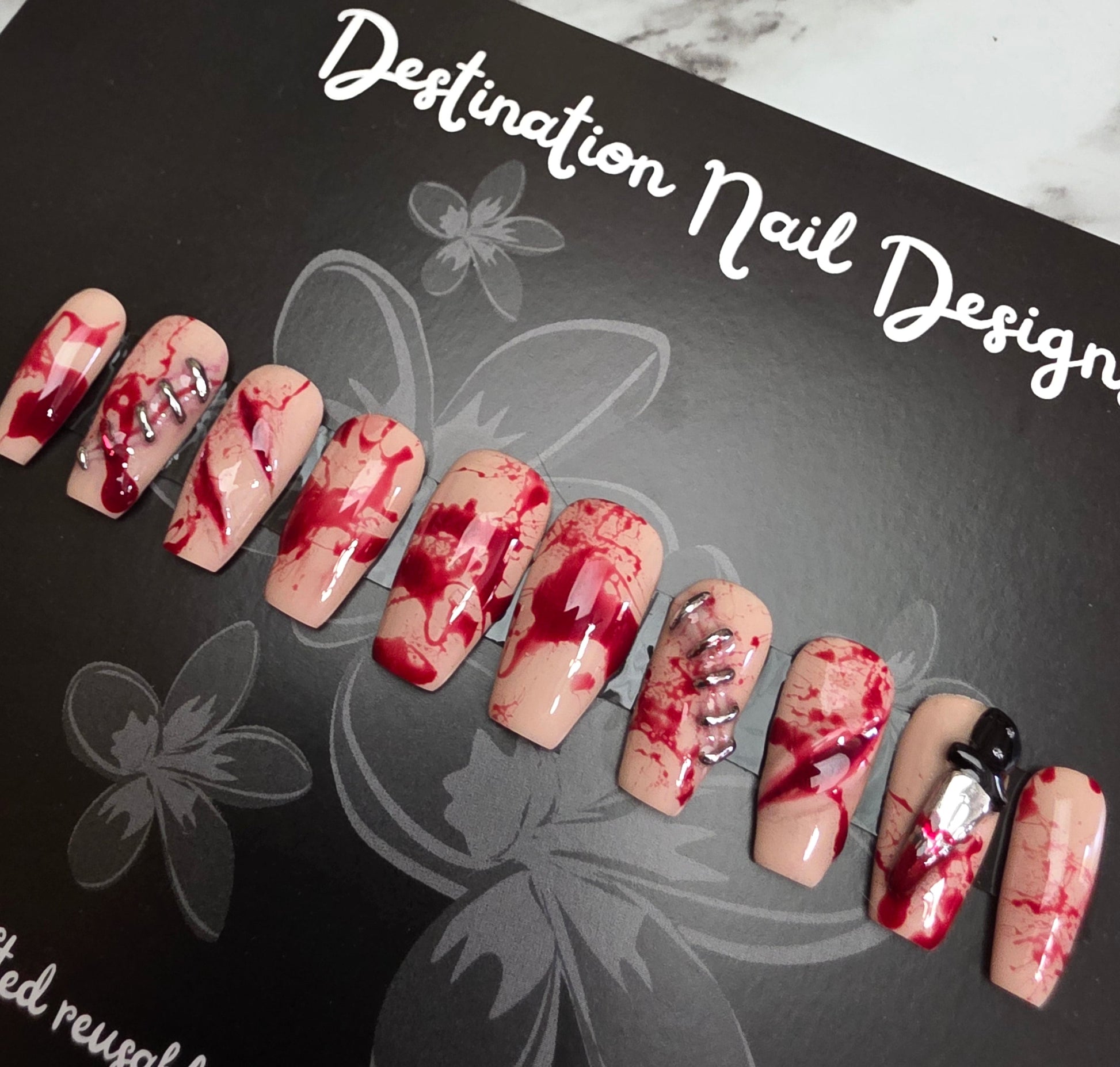 Perfect for a Halloween and Spooky Season! 3D Knife, and 3D wounds with just a splash of blood. If you want something a little more demure for the spooky season, I can definitely accommodate!